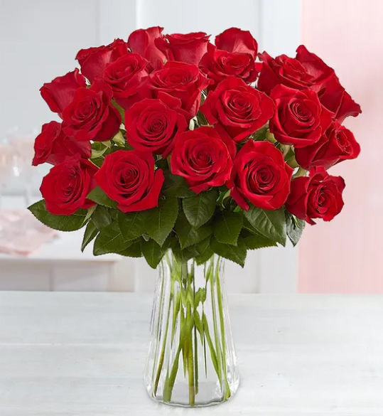 材料包裝: 24朵紅玫瑰,瓶插花。